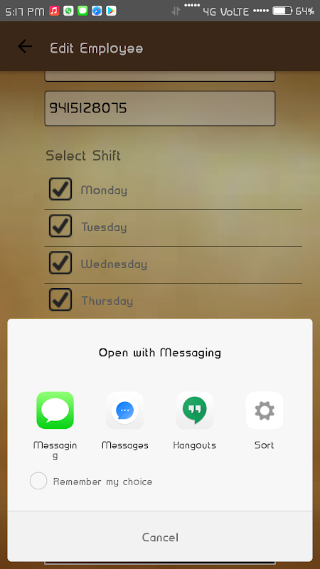Admin also able to reschedule employee shift ,update contact number and information of change shift will be send to the employee with the help of sms.
