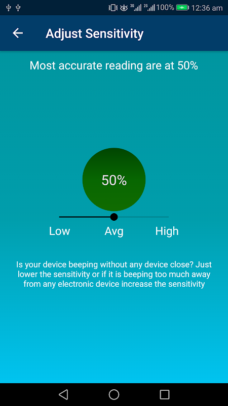 DetectIT camera detector allows you to change the sensitivity of the readings. If you are getting high reading even when you are not close to any device you can just decrease the sensitivity. Or if you are getting too low reading you can increase the sensitivity as per your needs.