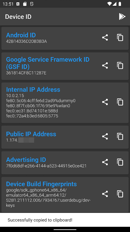 बस अपने डिवाइस की आईडी और जानकारी प्राप्त करें और कॉपी करें!