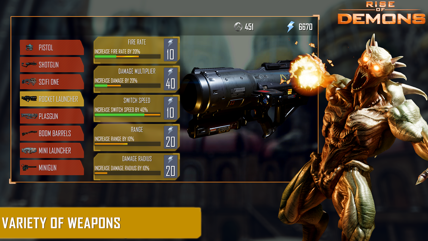 Unique never seen before gameplay on mobile platform. With large hordes of zombies on your screen to unique demons you will want to slay more and more enemies. With modes like time trial to extra life pickups the game gives you full choice & complete freedom to master the levels.