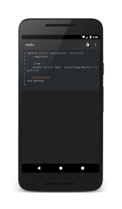 रिवर्स-इंजीनियर एंड्रॉइड एप्लिकेशन कभी भी आसान नहीं रहे हैं। उपयोगकर्ता इंटरफ़ेस नेविगेट करने में आसान के साथ तुरंत Android अनुप्रयोगों को अपघटित करने के लिए मोबाइल उपकरणों के लिए डिज़ाइन किया गया है। Apk कोड, डीएक्स, ओडेक्स और ओट के अपघटन का समर्थन (जैसा कि सभी संस्करणों का समर्थन नहीं है) स्माली कोड में फाइलें। आप निर्बाध पैकेजों को फ़िल्टर करने के लिए पैकेज फ़िल्टर भी लागू कर सकते हैं और एक निश्चित ऐप के भीतर वर्ग / दायर / विधि नामों से खोज सकते हैं।
