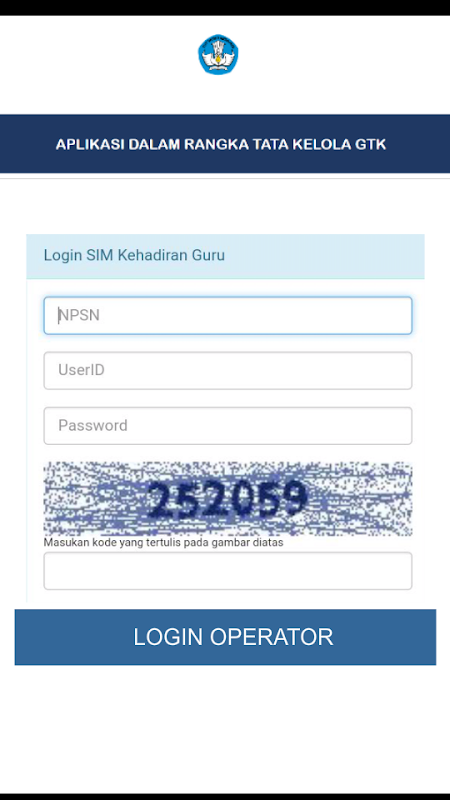 Silahkan masukan NPSN, userid, password, dan Capthca