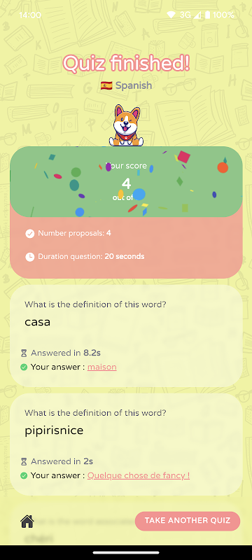 डिकोक्विज़ की प्रगति ट्रैकिंग सुविधा के साथ अपनी शब्दावली वृद्धि की निगरानी करें। समय के साथ अपने प्रश्नोत्तरी स्कोर में सुधार देखें और अपनी भाषा उपलब्धियों का जश्न मनाएं।