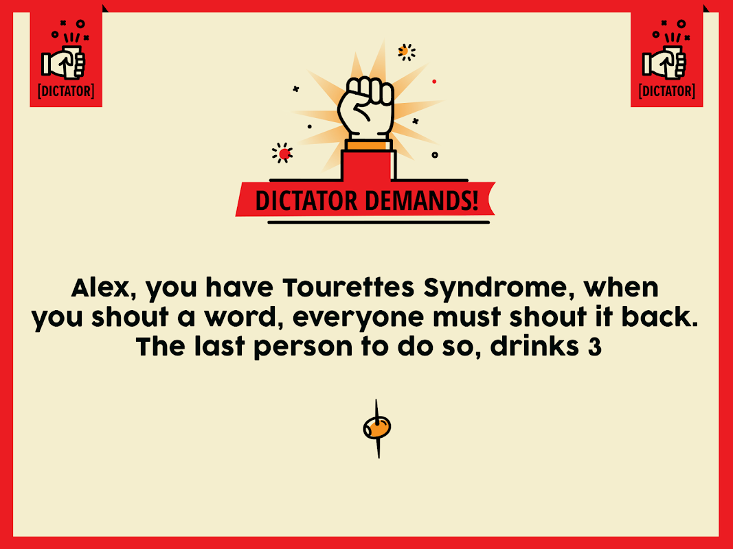 Dictator is a brand new drinking game & party game that you and your friends won’t be able to stop talking about!