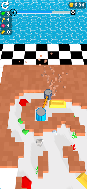 ख़जाना इकट्ठा करें, उन्हें बेचें और पैसे का उपयोग अपने क्रशर को अपग्रेड करने में करें।