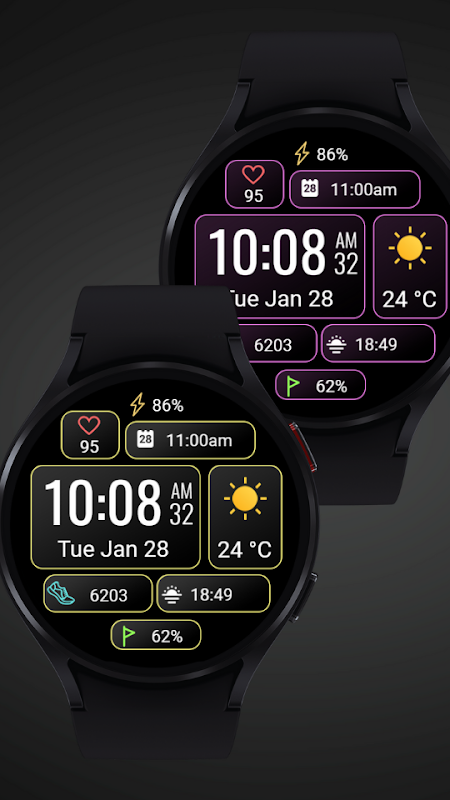वेयर ओएस के लिए डिजिटल ब्लॉक वॉचफेस। विशेषता :
