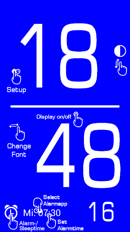 प्रदर्शन को स्पर्श करें और संख्याओं के लिए फ़ॉन्ट सेट करने के लिए प्रदर्शन को दाईं या बाईं ओर स्वाइप करें