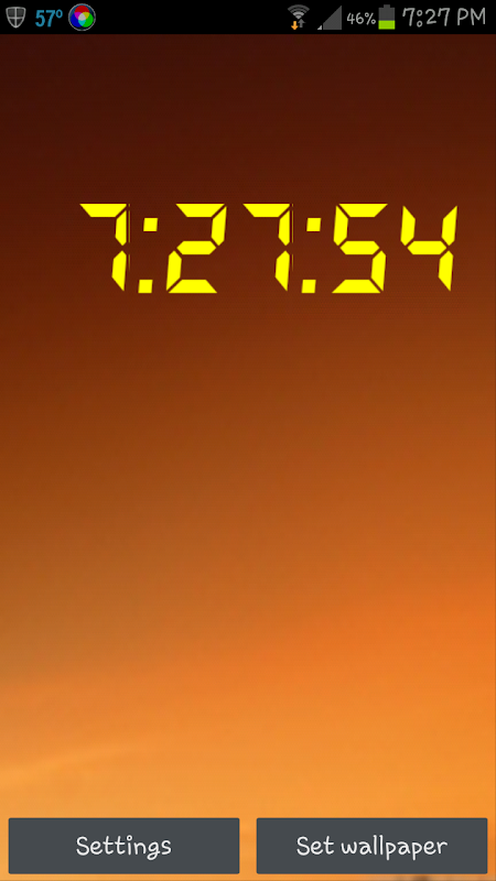 FREE Digital Clock live wallpaper, A light weight battery efficient Digital Clock for your Home Screen. Many customizations and more soon. FREE Digital Clock Live Wallpaper uses Time of Day to display the current sky, Morning Time , Day time Sunset , and Night Time.