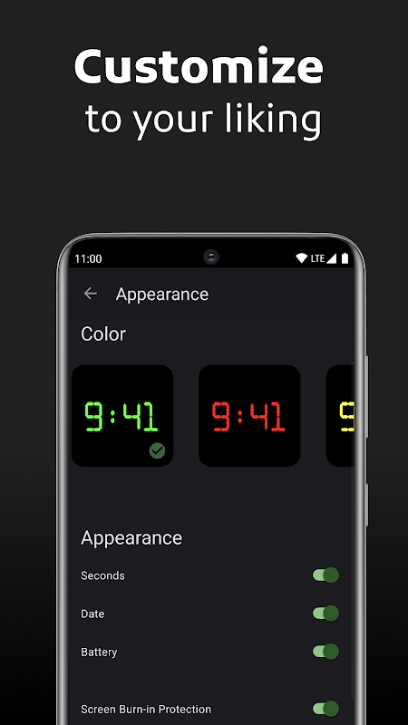 अपना दृश्य अनुकूलित करें: सेकंड, दिनांक, बैटरी स्तर और रंग चयन प्रदर्शित करने के विकल्पों के साथ डिजिटल घड़ी को अपनी शैली के अनुरूप बनाएं। साथ ही, क्लासिक या आधुनिक लुक के लिए डिजिटल और एनालॉग डिस्प्ले के बीच स्विच करें। आपकी घड़ी, आपके नियम।
