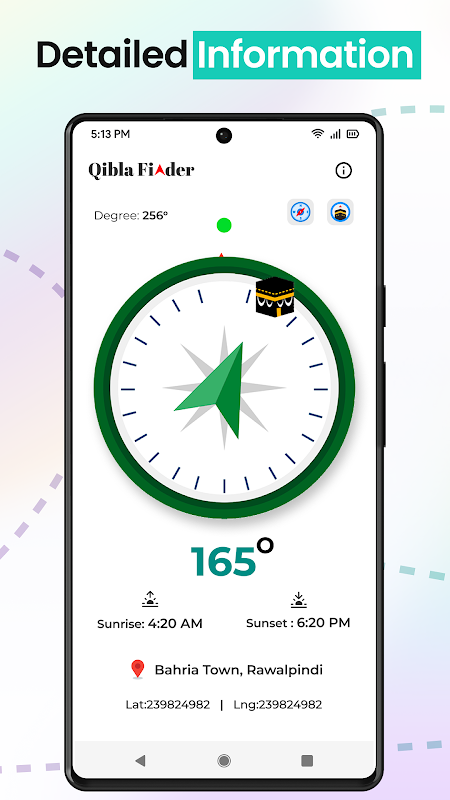 यह क़िबला खोजक, काबा की सटीक दिशा जानने के लिए सबसे अच्छे क़िबला दिशा खोजकों में से एक है। सभी के लिए एक आदर्श और उपयोग में आसान क़िबला खोजक कम्पास।