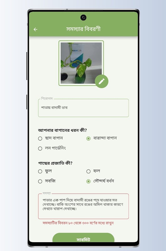 सबसे पहले, अपने बगीचे/पौधे की एक तस्वीर लें जिसमें दिखाई देने वाली समस्या हो।