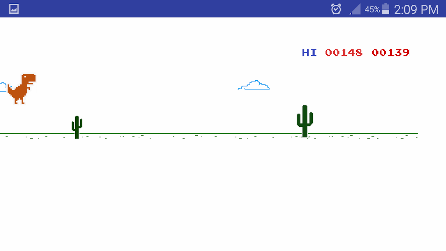 Just tap on the screen for T-Rex to jump over the obstacle and earn points.