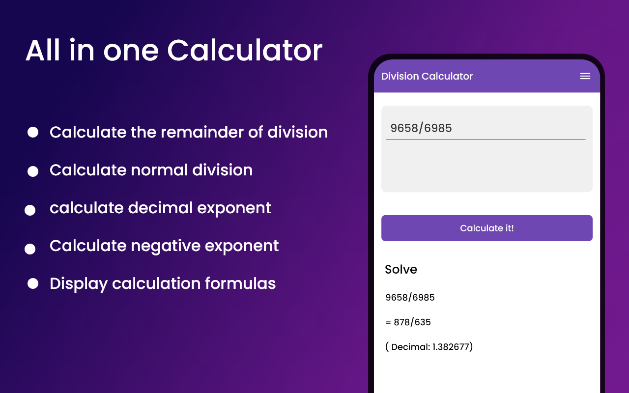 - Now supporting 4 operations (division, multiplication, addition and subtraction)