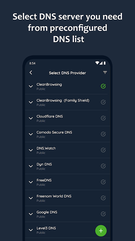 DNS चेंजर ऐप के साथ, आप सबसे तेज़ DNS सर्वर पा सकते हैं और बस एक टच से उससे कनेक्ट हो सकते हैं।