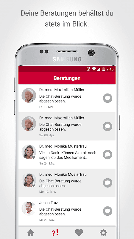 "An einem Samstagvormittag, an dem man sich eigentlich schon in einer übervollen Notdienstpraxis sitzen sieht, und man nachher mit einer Lapalie wieder nach Hause kommt, sehr beruhigend. Ich denke, so könnten einige im Endeffekt unnötige Besuche in der Notfallaufnahme verhindert werden und es bliebe wieder mehr Zeit für echte Notfälle. Weiter so!" (Chat mit Dr. med. Marion Eckert, Fachärztin für Kinder- und Jugendmedizin)