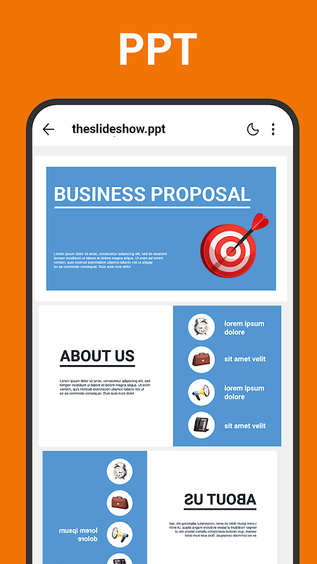 • File opener for PDF, Word, Excel, PPT, TXT.