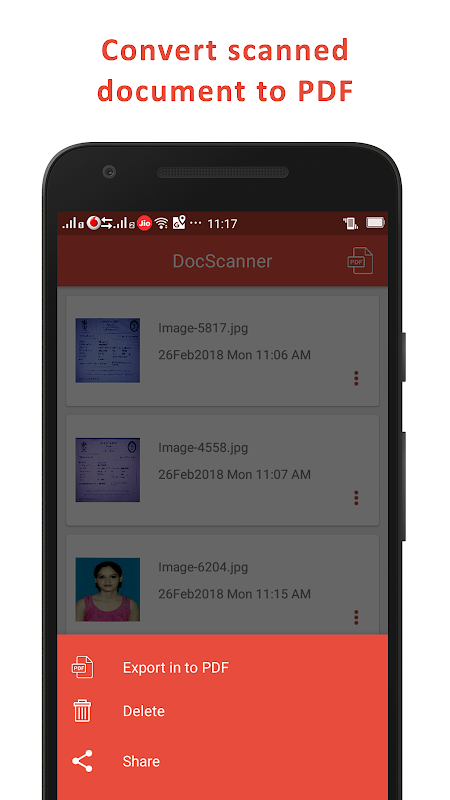 DocScanner will let you to convert your scanned document to PDF. You can also share your PDF with your friends right from the app.