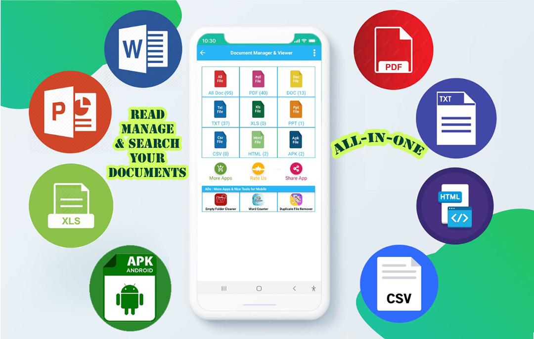The app will let you to list all type of documents categorically with its size and date , and also alot of option like delete , rename , share , sorting etc . Document manager & document viewer is the best tools for android user . Direct List of Documents available in mobile storage. Manage Documents, Filter or Short Document Files.Document Management in your mobile. Shortlist xls, pdf, doc, txt files in your mobile. In this app manage PDF, Text, Microsoft Word, MS Excel and MS PowerPoint documents at one place.