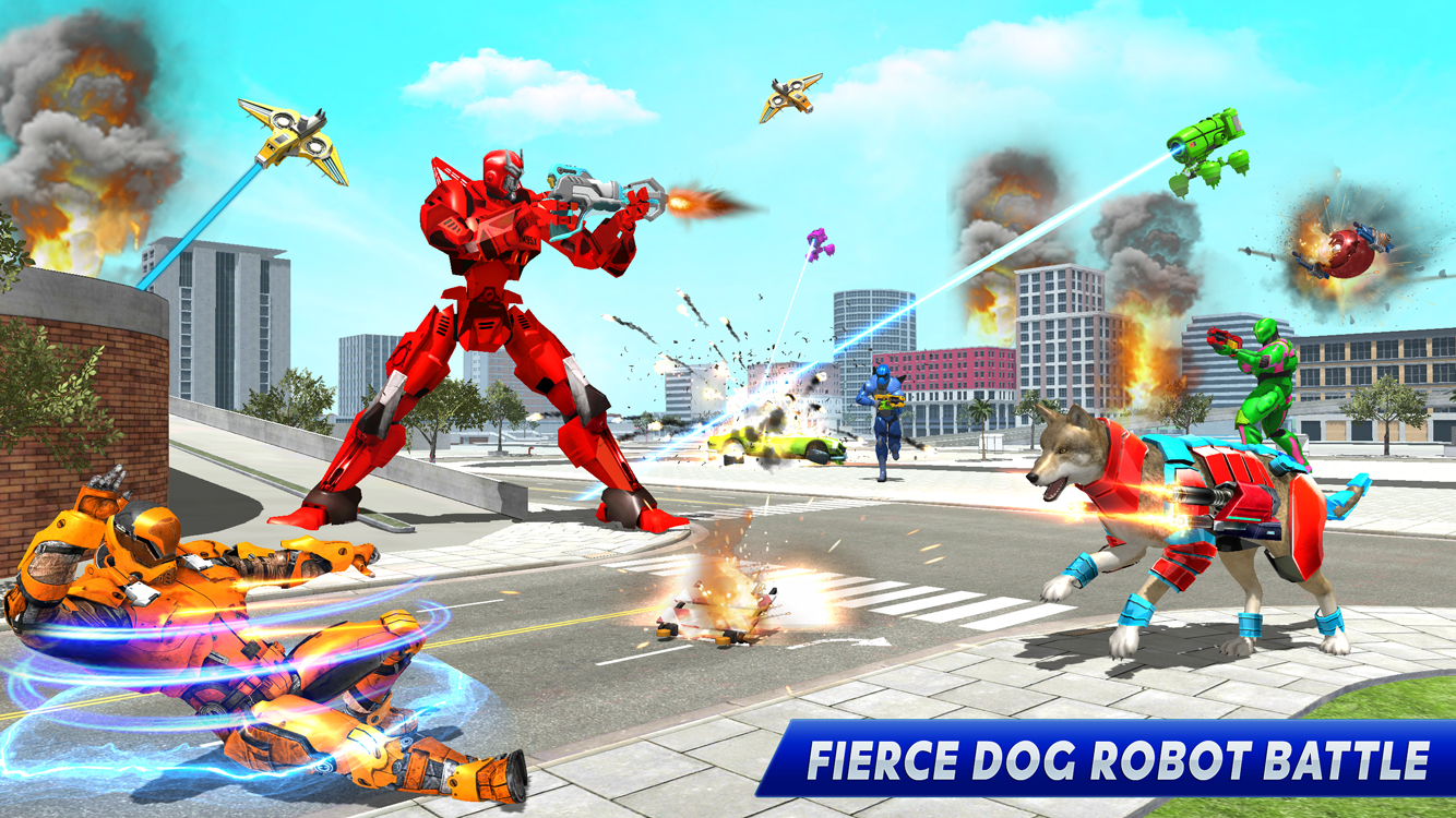 एक कुत्ते रोबोट नायक के रूप में रोबोट बाइक ट्रांसफ़ॉर्म के साथ मिलाया जाता है, आपको रोबोट के खिलाफ रोबोट युद्ध से बचना होगा जिन्होंने शहर पर आक्रमण किया है और शहर पर दावा करना चाहते हैं। एक उग्र कुत्ते रोबोट परिवर्तन में लगना और रोबोट लड़ खेलों और रोबोट बदलने वाले खेलों में शहर की रक्षा करना। रोबोट युद्ध के खेल में भाग लें और दुश्मन के आधार डॉग रोबोट गेम को नष्ट करें। इस रोबोट गेम में दुश्मन रोबोट के साथ चरम लड़ाई के लिए अपने रोबोट को प्रशिक्षित करें। डॉग रोबोट गेम्स और रोबोट बाइक गेम सहित बाइक रोबोट गेम्स में तब्दील होते हुए असली रोबोट से लड़ने के लिए तैयार हो जाइए।