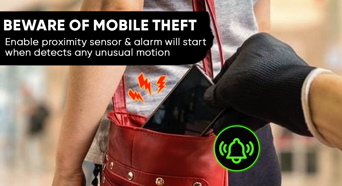 यात्रा के दौरान आप मोबाइल को चोरी या जेब से चोरी होने से बचा सकते हैं, निकटता का पता लगाने के साथ एक जोरदार अलार्म चालू हो जाता है।