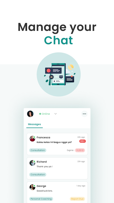 आसानी से अपनी कोचिंग गतिविधि का प्रबंधन करें और उपयोगकर्ता के साथ बातचीत करें!