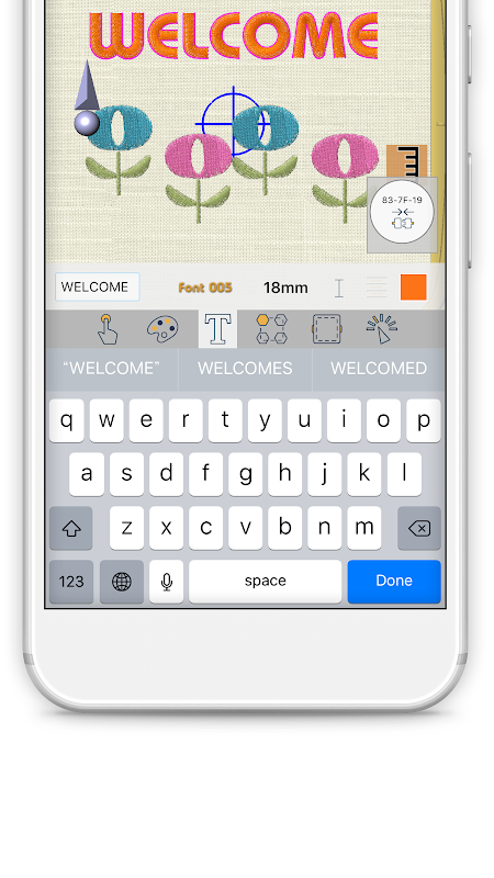 · बस किसी भी निर्मित डिज़ाइन को चुनें और सिलाई के लिए कढ़ाई मशीन को वायरलेस तरीके से भेजें (डिजाइनों को स्थानांतरित करने के लिए डोरियों या यूएसबी स्टिक की कोई आवश्यकता नहीं)।