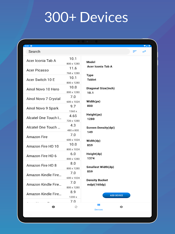 अपनी डाइमेन फ़ाइलों को समूहित करने के लिए डॉट्स प्रति इंच से SWDp की गणना करें। सटीक पिक्सेल प्रति इंच के साथ लेआउट को कैलिब्रेट करें। हैंडसेट, टैबलेट, फोल्डेबल, क्रोमबुक जैसे विभिन्न उपकरणों के साथ अपने ऐप को संगत बनाएं। xxhdpi स्क्रीन घनत्व में आयाम दर्ज करें और अन्य आयाम उत्पन्न करें। लेआउट डिज़ाइन करने के लिए मेरे स्क्रीन रिज़ॉल्यूशन आकारों के साथ एम्यूलेटर बनाएं। डीपीआई चेकर न केवल यह एप्लिकेशन आपको हमारी अपनी स्क्रीन घनत्व की जांच करने की अनुमति देता है बल्कि यह आपको अन्य ऐप्स के समान पता लगाने की सुविधा भी देता है।