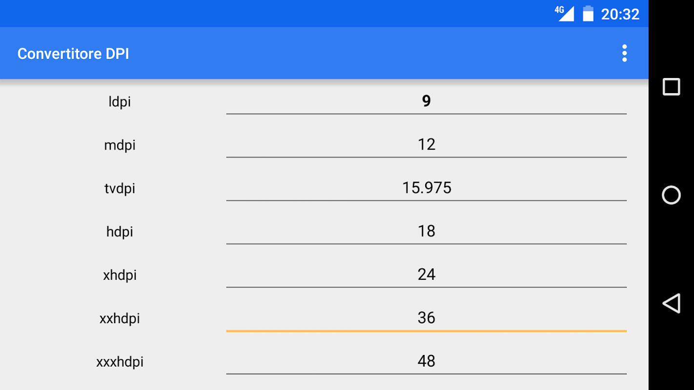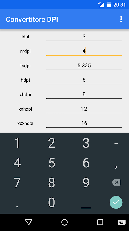 एक साधारण उपकरण एंड्रॉयड द्वारा समर्थित विभिन्न घनत्व के बीच पिक्सेल आयाम बदलने के लिए।