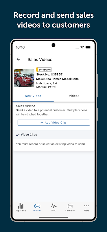 पॉइंट, शूट, सेंड - इसका इतना आसान है कि आपके पास स्टॉक में मौजूद किसी वाहन का वीडियो शूट करना और संभावित ग्राहक को भेजना। जैसे ही वे वीडियो देखते हैं आपको सूचित किया जाएगा - यह उन्हें संलग्न करने का एक शानदार तरीका है और अंतिम बिक्री को सुरक्षित करने के लिए सैकड़ों कार डीलर्स की मदद की है।
