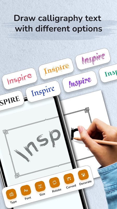 • अपनी पसंदीदा सुलेख शैली और फ़ॉन्ट चुनें।