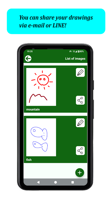 *छवियों की सूची पर जाने के लिए "ड्राइंग" बटन पर टैप करें।