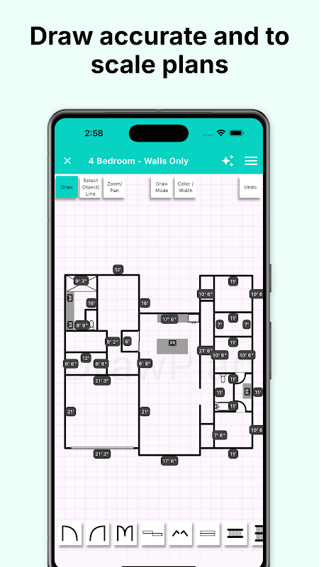 - सटीक माप वाले प्लान या फ्री स्केच मोड में से चुनें