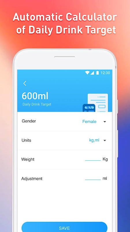 उपयोग करने में अत्याधिक सरल! बस अपना भार प्रविष्ट करें और Drink Water Reminder आपको बताएगा कि आपके शरीर को कितने पानी की आवश्यकता है और आपको पानी पीने के बारे में याद दिलाएगा। बस आदेश लें। पर्याप्त पानी पीने को कभी भी चुनौती न समझें।