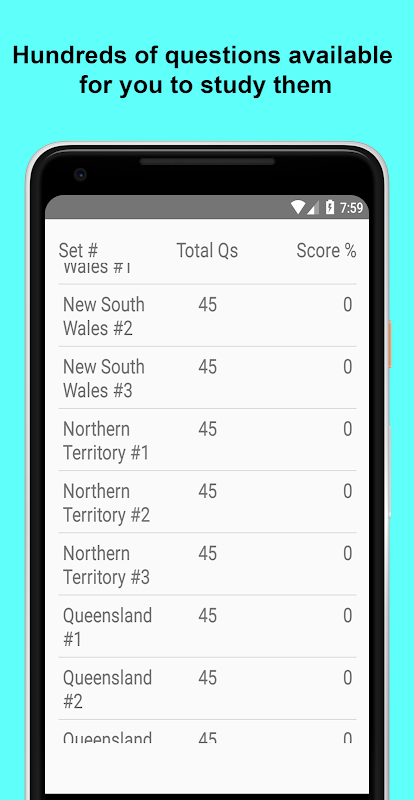 आधिकारिक सामग्री से प्राप्त नवीनतम प्रश्न अभ्यास के लिए उपलब्ध हैं। यह मुफ्त ऑस्ट्रेलियाई चालक ज्ञान परीक्षण प्रस्तुत करने का ऐप सभी ऑस्ट्रेलियाई ड्राइवरों के लिए सभी नवीनतम प्रश्नों का अभ्यास करने और उड़ने वाले रंगों के साथ अपनी परीक्षा पास करने के लिए लक्षित है।