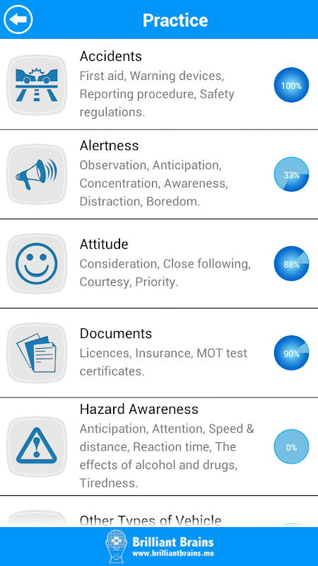 With our unique progress tracking feature including pie charts and bar graphs showing your progress, you know you are ready to take on the real test at the board when your progress meter says 100%.