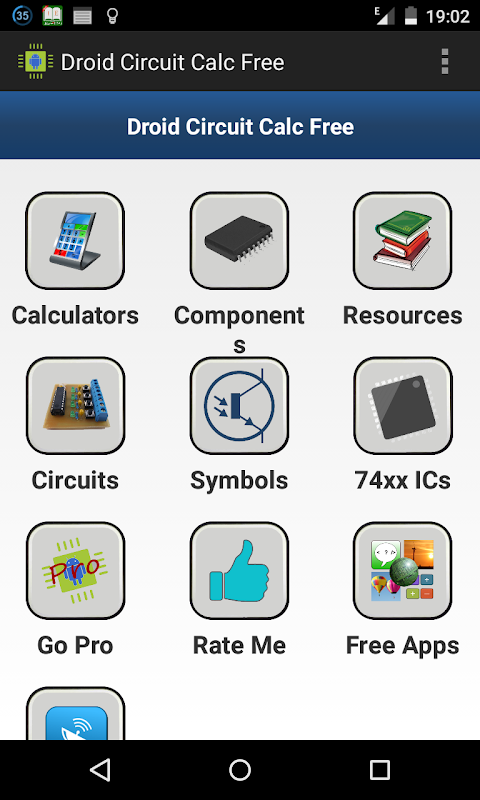 ड्रॉइड सर्किट कैल्क इलेक्ट्रॉनिक सर्किट कैलकुलेटर, इलेक्ट्रॉनिक घटक गाइड, उपयोगी इलेक्ट्रॉनिक संसाधन गाइड, शौकीनों के लिए इलेक्ट्रॉनिक सर्किट का विशाल संग्रह, इलेक्ट्रॉनिक प्रतीक और 74xx आईसी श्रृंखला पिन आउट आदि प्रदान करता है।