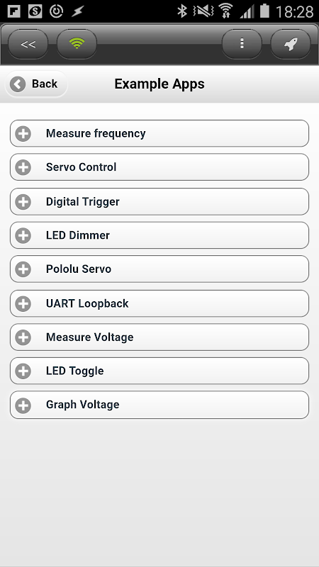 Control the popular IOIO interfacing boards with USB or Bluetooth from your DroidScript apps. There are lots of code samples included too.