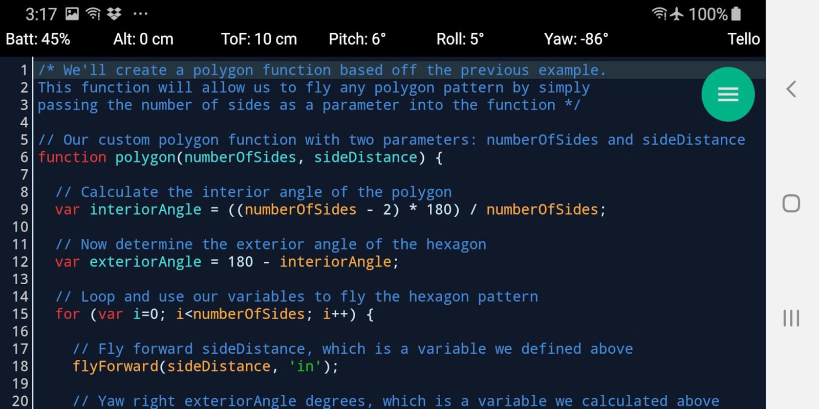 DroneBlocks कोड उन्नत उपयोगकर्ताओं के लिए है जो DroneBlocks के साथ ब्लॉक कोडिंग से आगे बढ़ गए हैं। "कोड" के साथ अब आप जावास्क्रिप्ट और अधिक उन्नत प्रोग्रामिंग तकनीकों का उपयोग करके अपने टेलो और टेल्लो ईडीयू को प्रोग्राम कर सकते हैं।