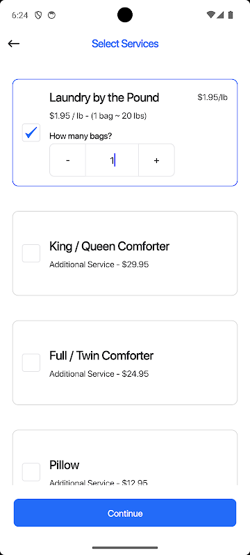 आसान पिकअप और डिलिवरी: बस एक पिकअप समय निर्धारित करें जो आपके लिए उपयुक्त हो, और हमारी मित्रवत टीम सीधे आपके दरवाजे से आपके कपड़े एकत्र कर देगी।