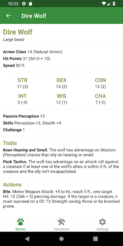 Druid Wild Shapes को सरल और प्रबंधित करने के लिए D & D 5e के लिए एक संदर्भ और उपयोगिता ऐप।
