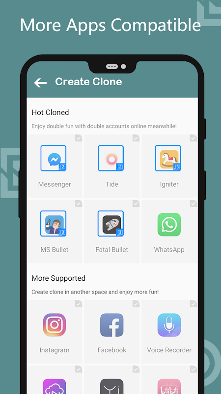 कोई आवश्यक नहीं! ड्यूप स्पेस के साथ, आपको एक ही समय में एक ही ऐप के सभी खातों को चलाने के लिए केवल एक डिवाइस की आवश्यकता होती है