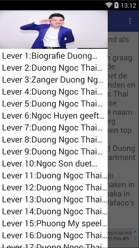 Hij staat bekend als zangerige volksliederen. De afgestudeerde studenten willen graag opgroeien als ze plotseling bij de senior zangers staan, samen met de aanmoediging van leraren, vrienden en passie voor volksliederen, Ngoc Thai d. Met de steun van buitenlandse landgenoten weg van huis is de naam Duong Ngoc Thai nog steeds erg nieuw, maar is uitgegroeid tot een top keuze van mensen die van het thuisland houden. In 2001 werd Duong Ngoc Thai door het HCMC Department of Culture and Information geselecteerd om samen met zijn oudere broers een tournee te maken in Japan over het programma "Osaka in the World". Leven en carrière. Vafaco's platenlabel maakte toen een thuiskomend album getiteld "Countryside Country" met 3 stemmen geselecteerd "send gold" is Huong Lan, Van Khanh en Duong Ngoc Thai. In 1998 wordt Duong Ngoc Thai toegelaten tot het College van Kunst en Cultuur Ho Chi Minh City 4 In 3 jaar onderwijs heeft Ngoc Thai de titel van uitstekende student behaald en is hij afgestudeerd met dezelfde titel. School, met uitstekende academische prestaties en aanbevolen door leraren. Duong Ngoc Thai werd geboren op 26 juni 1979 in Ho Chi Minh City, oorspronkelijk uit Quang Ngai