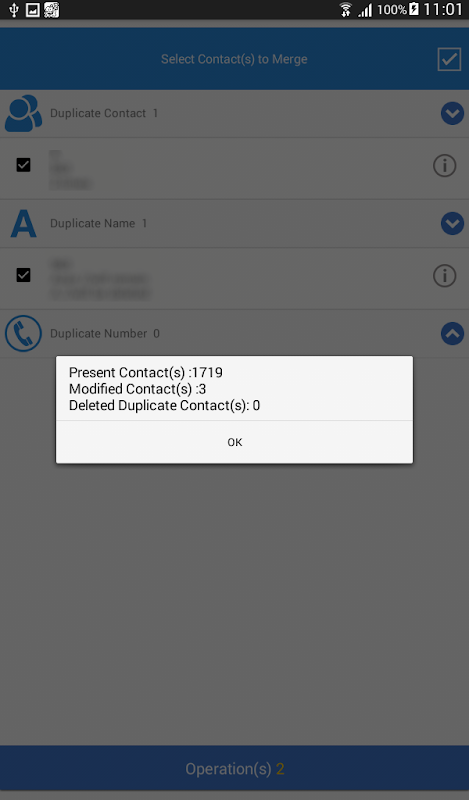 3. डुप्लीकेट नंबर Merger- फोन / मोबाइल नंबर के आधार पर डुप्लिकेट: एक ही नाम के तहत अधिकतम 3 फोन नंबर विलीन हो जाती है और अन्य संपर्कों को हटा दें।