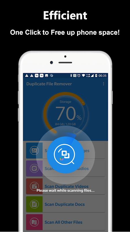 ● बहु फ़ाइल प्रकार को स्कैन करें: डुप्लीकेट फ़ोटो, डुप्लीकेट ऑडियो, डुप्लीकेट वीडियो, डुप्लीकेट एपीके और डुप्लीकेट दस्तावेज़ इत्यादि जैसी बहुत सी डुप्लिकेट फ़ाइलों को स्कैन करना।