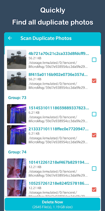 डुप्लिकेट फोटो खोजक और हटानेवाला ate आसानी से मिल और डुप्लिकेट तस्वीरें निकालें!