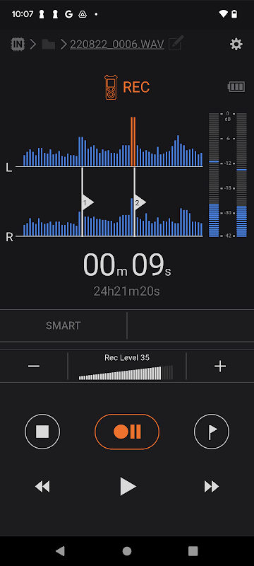 यह ब्लूटूथ इयरफ़ोन के माध्यम से रिकॉर्डिंग की निगरानी करते हुए रिकॉर्डिंग स्तर को समायोजित करने की अनुमति देता है।