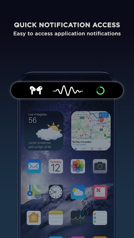 * Easy to see and access the notifications and do the actions on Dynamic Island notch cutout effect by animation.