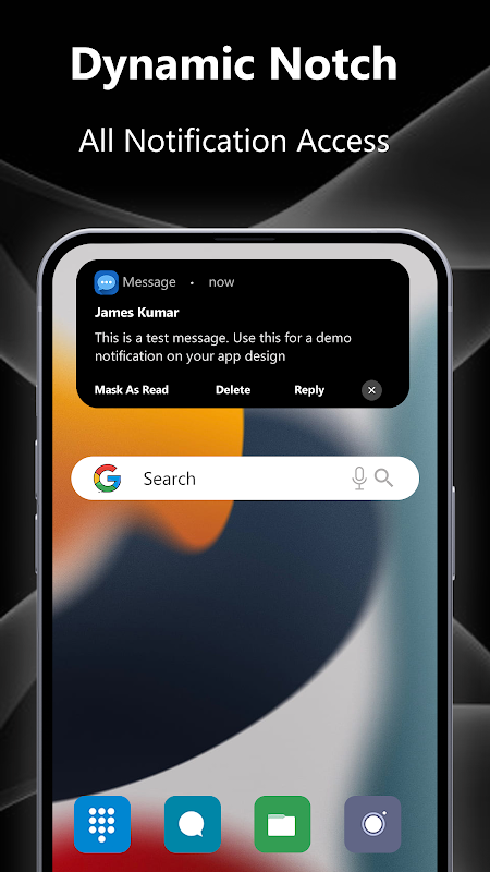 Notch os 16 डायनेमिक आइलैंड व्यू अच्छा दिखता है और आप इसे एक क्लिक से आसानी से एक्सेस कर सकते हैं। यह नॉच फोन एक्स डायनामिक आइलैंड फीचर आपको समय बचाने और आपके महत्वपूर्ण संदेशों का तेजी से जवाब देने की सुविधा देता है। इस पायदान स्क्रीन ऐप की सबसे महत्वपूर्ण विशेषता यह है कि आप अपने मोबाइल स्क्रीन पर कहीं भी पायदान स्क्रीन गतिशील द्वीप दिशा बदल सकते हैं।