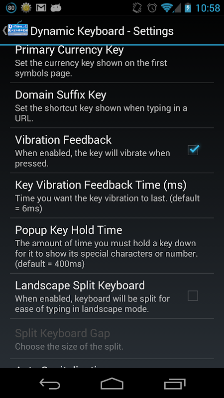 1) सामान्य सेटिंग्स के तहत मिली गतिशील कीबोर्ड की सेटिंग में सक्षम है ऑटो सही जाँच करें.