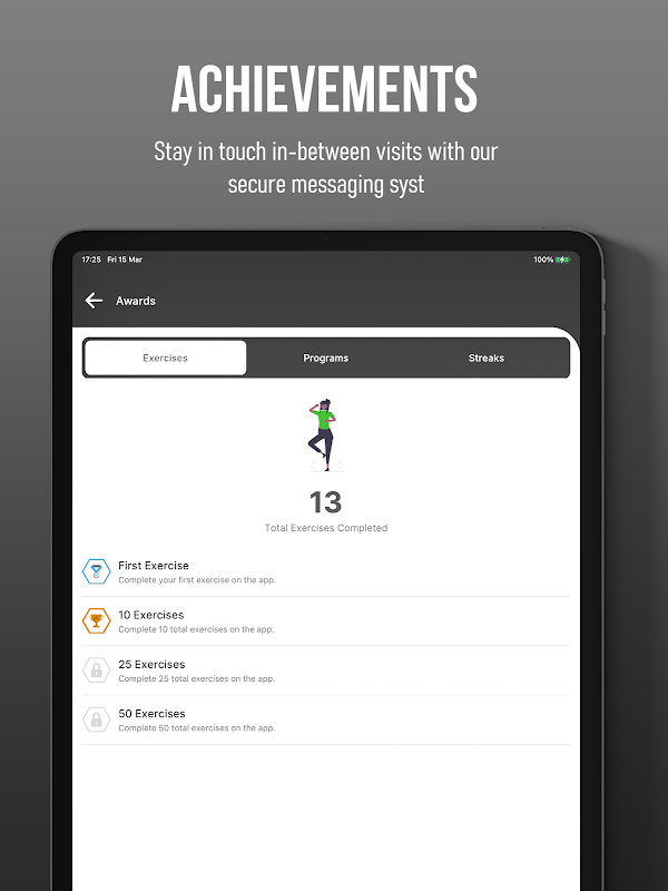 इस ऐप का उपयोग करके, आप एचडी निर्देशात्मक वीडियो के साथ अपने व्यक्तिगत घरेलू व्यायाम कार्यक्रम तक पहुंच सकते हैं। 'संदेश' टैब पर, आप अपने डायनामिक फिजिकल थेरेपी प्रदाता के साथ सुरक्षित रूप से संचार कर सकते हैं। जैसे ही आप अपना अभ्यास पूरा करेंगे, हम आपकी प्रगति का जश्न मनाने के लिए आपको ट्रॉफियां और पदक देंगे!